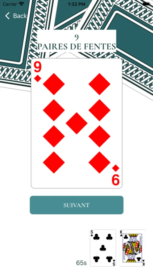 Chaque type de cartes correspond à l’exercice inscrit en haut de celle-ci. Si tu t’exécutes avant les 65 secondes imparties, tu peux taper sur « suivant » pour afficher la prochaine carte. Quels types d’exercices ? : des Fentes , Planches, Squats, Burpees, V Sit-Up, Du Cardio etc… c’est à dire de quoi faire travailler tout son corps afin de brûler un maximum de calories.