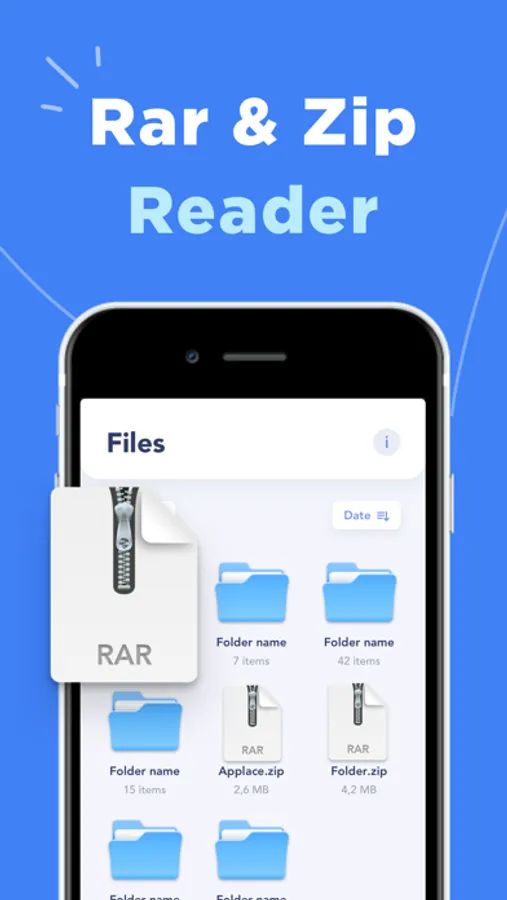 RAR & Zip file Extractor App is a management utility tool for iPhone that suits anyone who needs to unarchive files or compress them. Browse, open and view many document types: DOC, PPT, PDF, TXT, RTF, JPG, GIF, PNG and other file extensions. You can easily adapt you work routine by the following features: