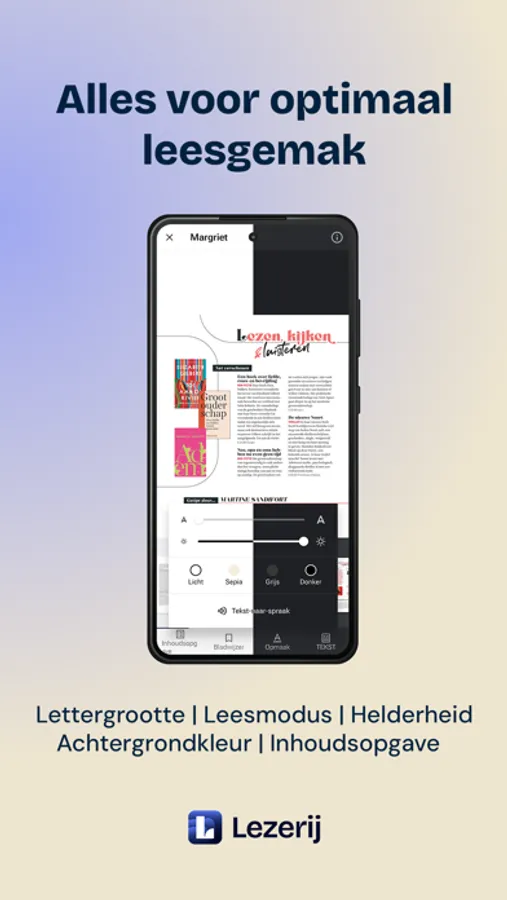 - Altijd de beste leeservaring, pas bijvoorbeeld de lettergrootte aan of wissel naar nachtmodus;