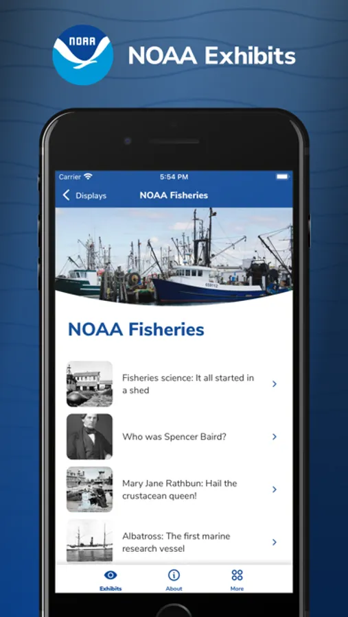 Download the NOAA Exhibits app when visiting the Treasures of NOAA’s Ark exhibit (currently at the Navy museum in Washington, D.C.) or the Gateway to NOAA in Silver Spring, Maryland. Access videos, photos, and stories about NOAA’s heritage, highlighting 200 years of science, service, and stewardship.