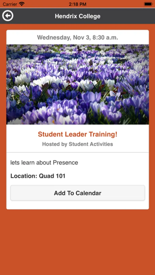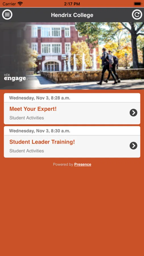 Use the Hendrix College Events app to find out what events are happening and find out how you can get involved on campus!