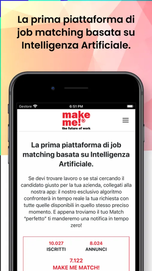Il nostro obiettivo è quello di migliorare il mercato del recruiting abbattendo tutte quelle barriere oggi presenti che ne ostacolano efficacia ed efficienza. Con i nostri match aiutiamo tutti i nostri utenti a trovare più opportunità, sempre concrete e pertinenti.