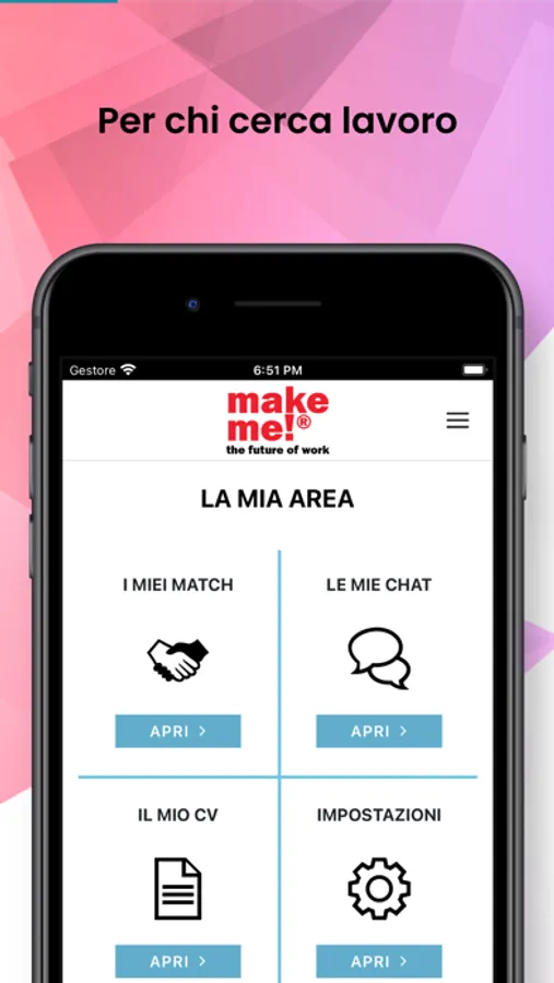 Se devi trovare lavoro o se stai cercando il candidato giusto per la tua azienda, collegati alla nostra app: il nostro esclusivo algoritmo confronterà in tempo reale la tua richiesta con tutte quelle disponibili in quello stesso preciso momento. E appena troviamo il tuo Match “perfetto” ti manderemo una notifica in tempo zero!
