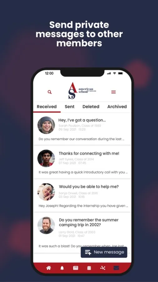 - Members can view new messages at a glance, and new messages are shown at the top. Members can archive, report and delete messages, and mark them as read or unread.