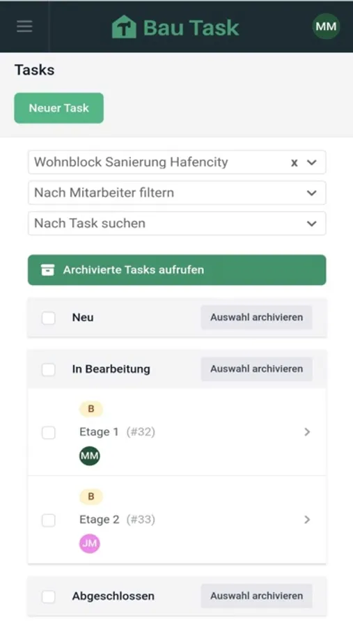 Mit BauTask steuern Sie effizient Ihre Bauprozesse, halten Ihr Team auf den neusten Stand und erreichen Ihre Projektziele.