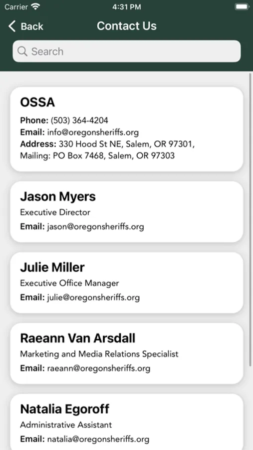 The Oregon State Sheriff’s Association (OSSA) mobile application is an interactive app developed to help improve communication with OSSA members and sheriff’s offices. The OSSA App provides important events, training dates and industry information to sheriff’s offices, as well as providing the community the latest public safety news and information.