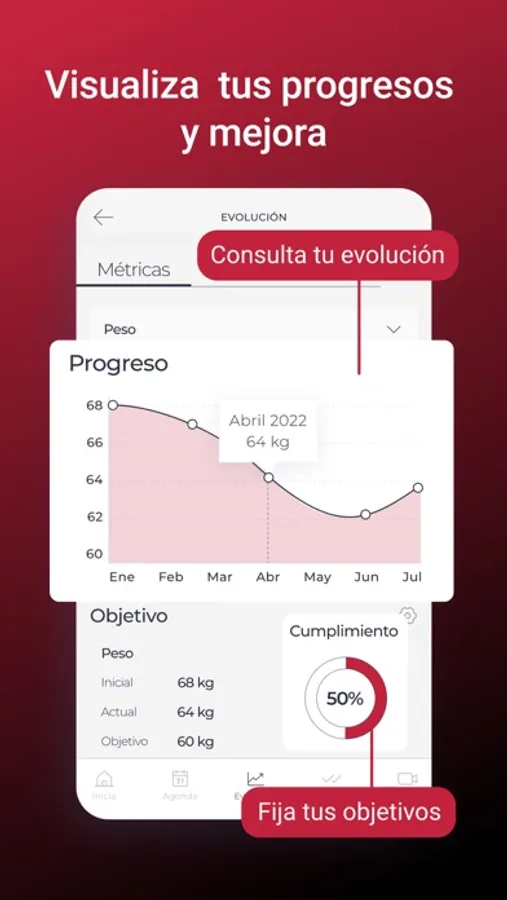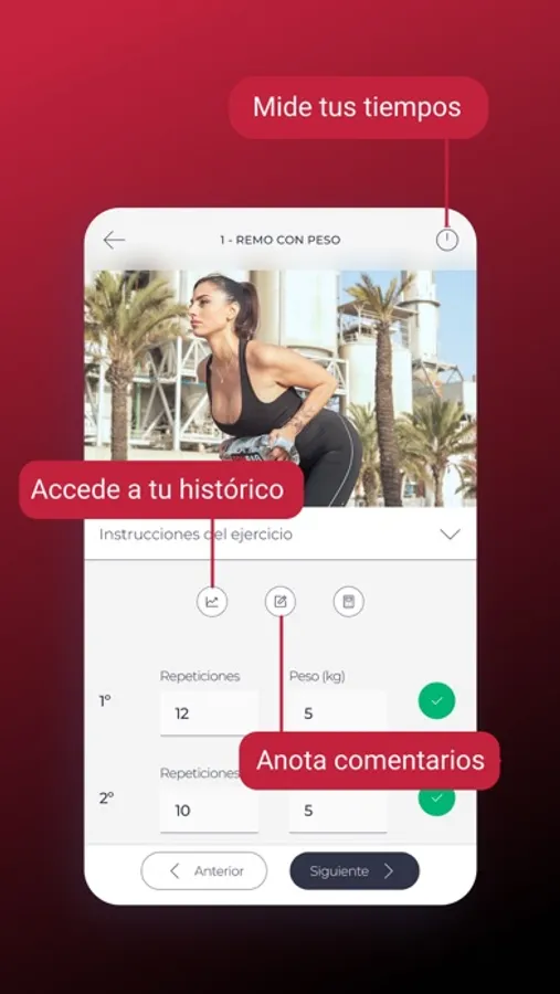 Organiza y programa tus rutinas de entrenamiento; anota tus resultados, realiza el seguimiento y comprueba tu evolución.