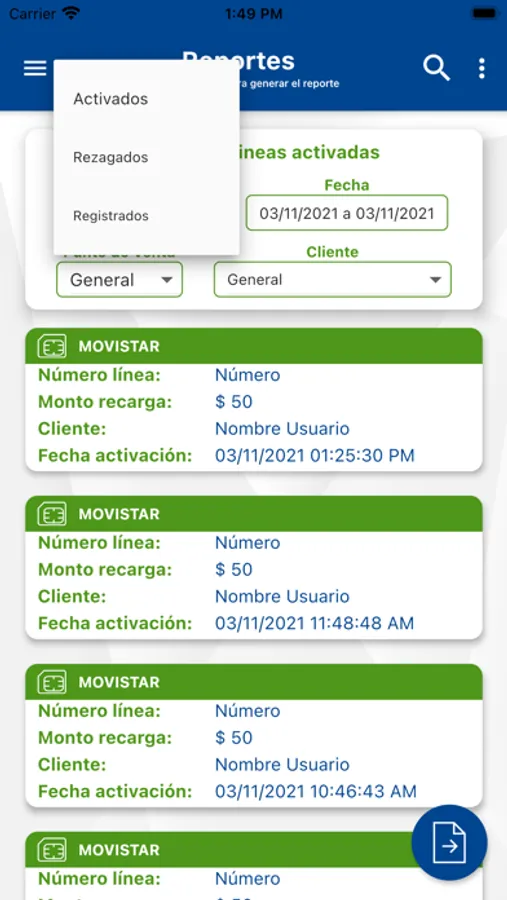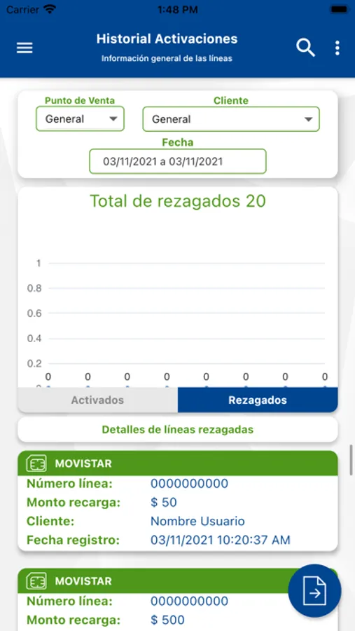 Obtendrá de manera detallada un reporte de los chips que se han activado en una determinada fecha.