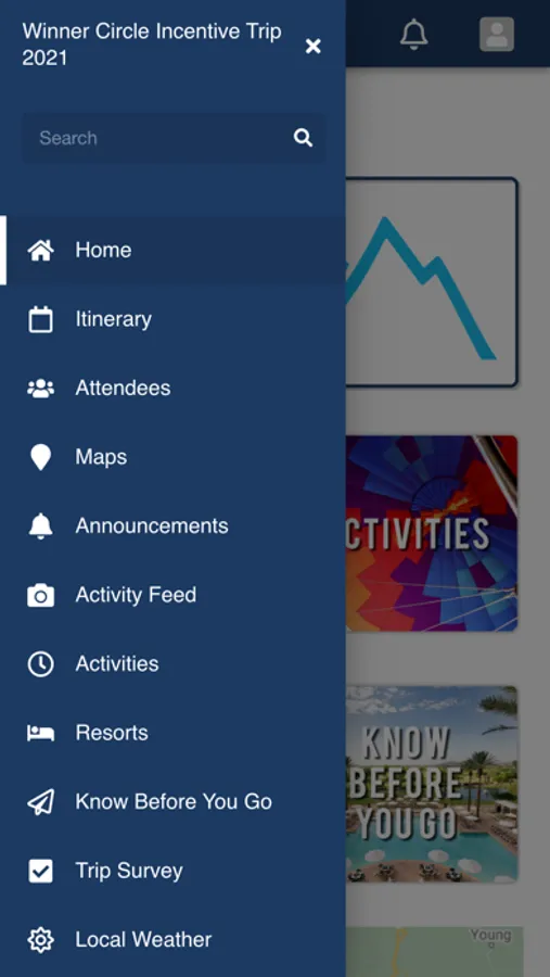 Winner's Circle Incentive Trip Mobile App allows the attendee to access their onsite registration information, itinerary and other necessary details.