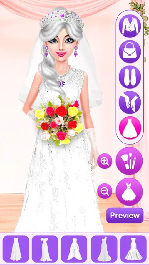 Girls need to discover a lots of wedding dresses to apply at their favourite characters. This dress up free game make your day busy as wedding planner and you need to do a lot of glorious makeover. Our wedding dress up game for girls give you some beautiful wedding bridal makeup game tools to experience best in making bride as beautiful as super stylish doll.