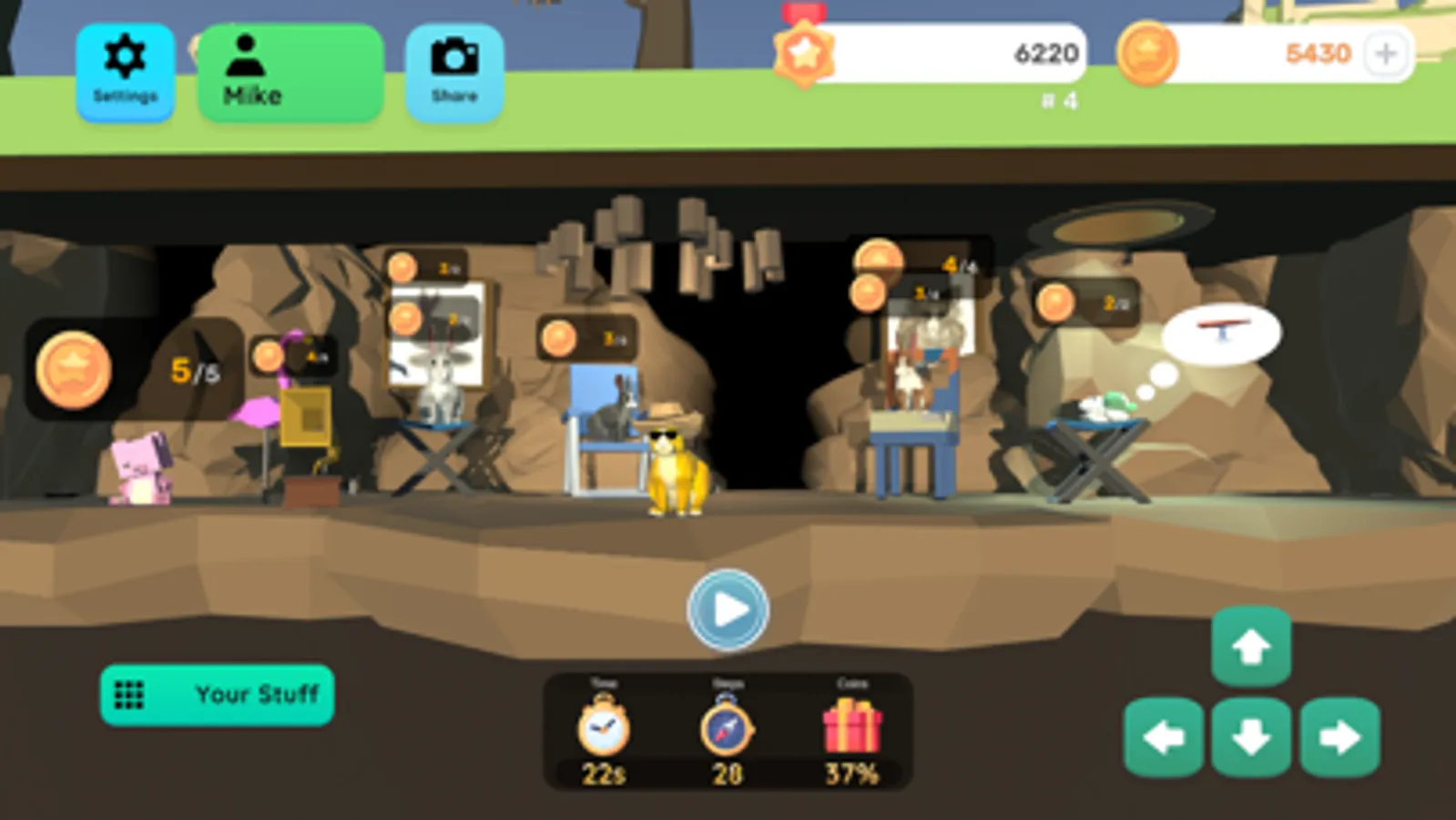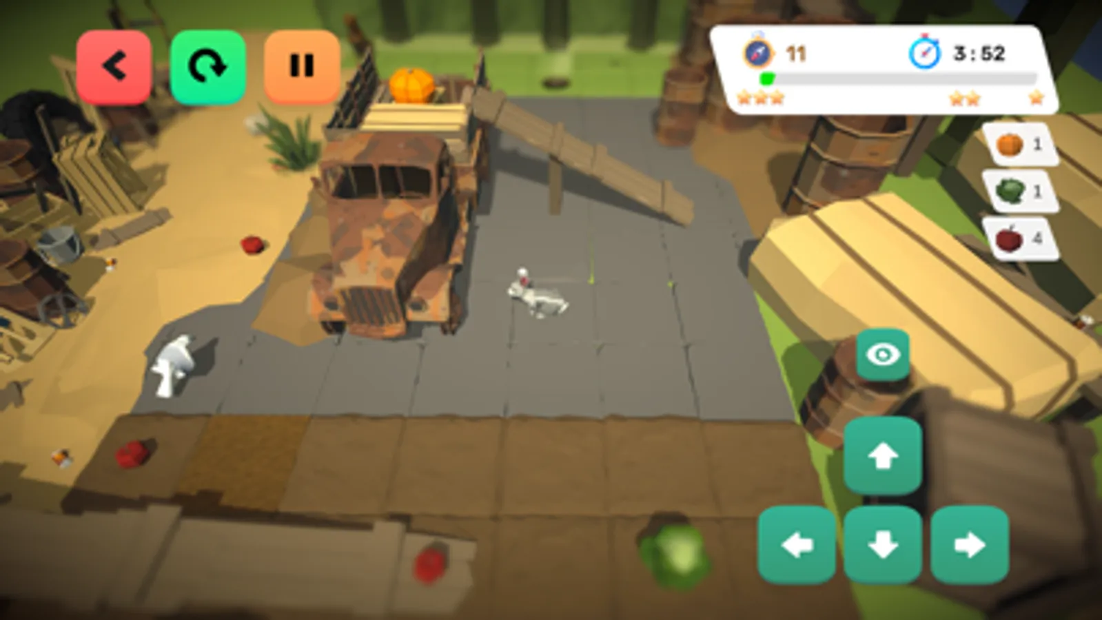 Your Wabbits want to eat all of the vegetables and fruits in every garden on their island, you control the Wabbit and use them to solve increasingly complex puzzles - pushing larger vegies into the burrow while snacking on the smaller ones you find along the way. You have to watch out for the cats and dogs that want to chase you, can you outsmart them by hiding behind larger items and getting them to chase gulls, or each other! You're Wabbits are smart, they'll figure it out!