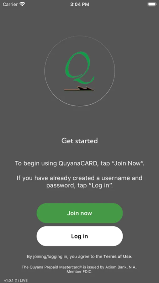 The QuyanaCARD Prepaid Mastercard is issued by Axiom Bank, N.A, Member FDIC, pursuant to a license from Mastercard International Incorporated. Mastercard is a registered trademark, and the circles design is a trademark of Mastercard International Incorporated. Certain fees, terms, and conditions are associated with the approval, maintenance, and use of the Card.