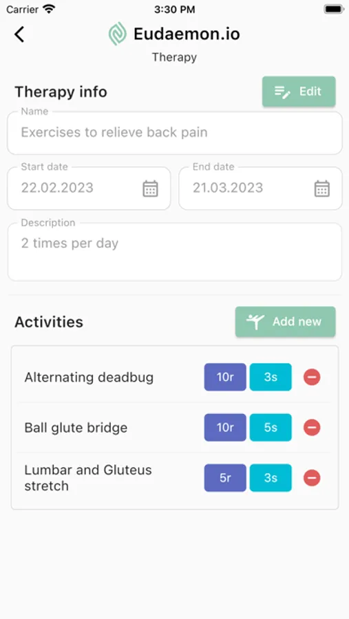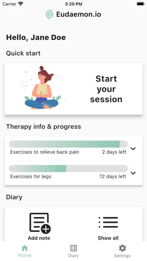 With the Eudaemon.io app you can increase the quality of your recovery by exercising every day, and save your time by not visiting your therapist on a daily basis.