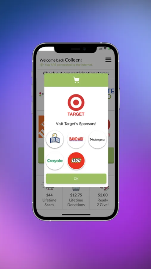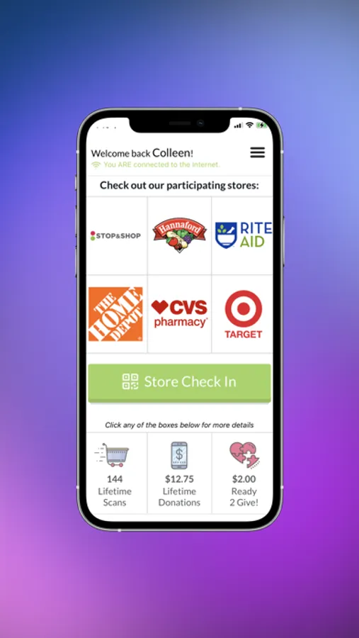 4. After scanning the QR code at your local participating supermarket, and scanning the QR code of our in store sponsors, you will be able to send a donation to a local non-profit of your choice within 7 days!
