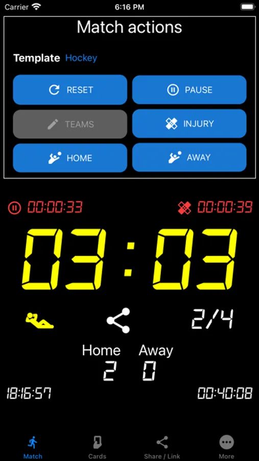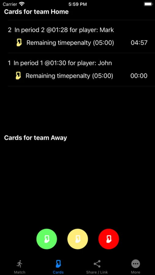 - at the end of each match, the App provides a clear overview of all match events, such as duration, cards, goals, breaks, etc.