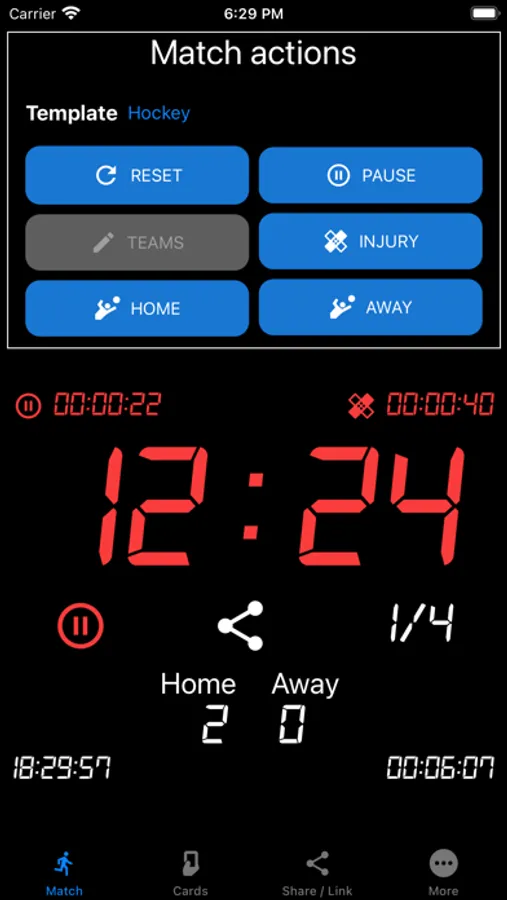 Ideal for use by a referee on a watch on the wrist. By sharing the match, a fellow referee can also see all the events on his or her watch (or mobile phone).