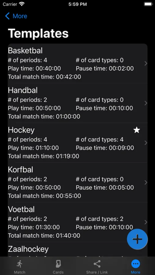 - the App comes standard with 9 templates of different sports to choose from