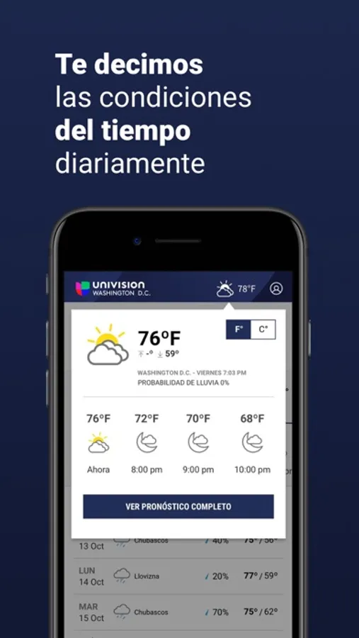 Consulta el pronóstico del tiempo con información del clima y condiciones meteorológicas.