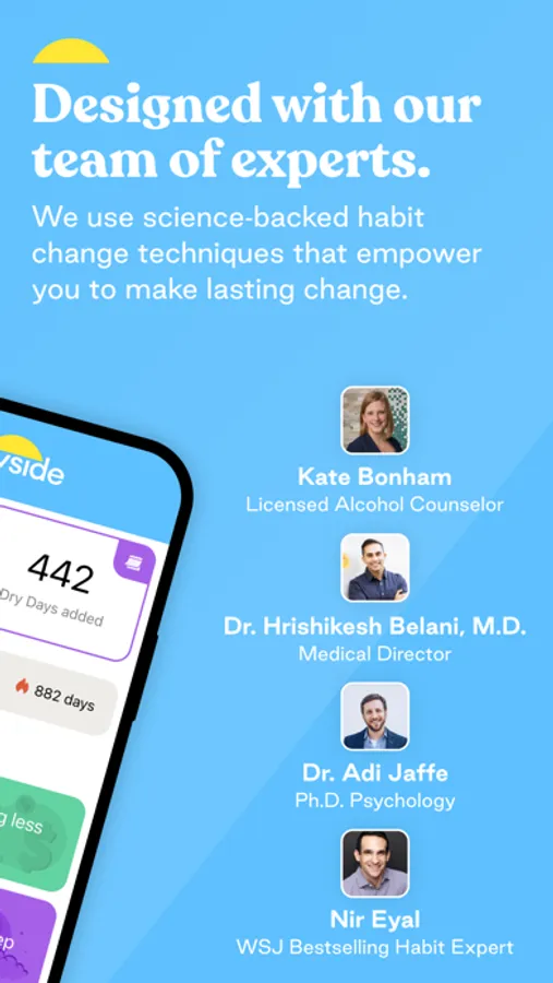 Reviewed and backed by an advisory board of medical and habit change experts, Sunnyside uses techniques such as pre-commitment and conscious interference to gradually help you reframe your relationship to alcohol without interrupting your day-to-day lifestyle.
