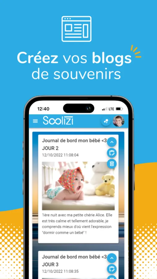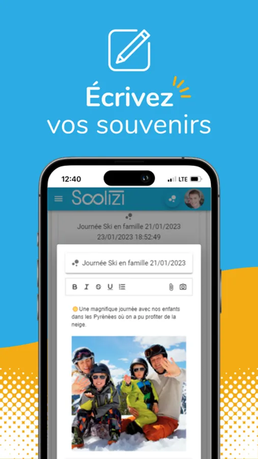 Commencez l’aventure gratuitement avec Soolizi, la seule application vous permettant de créer, personnaliser et transmettre vos souvenirs illustrés et votre mémoire.