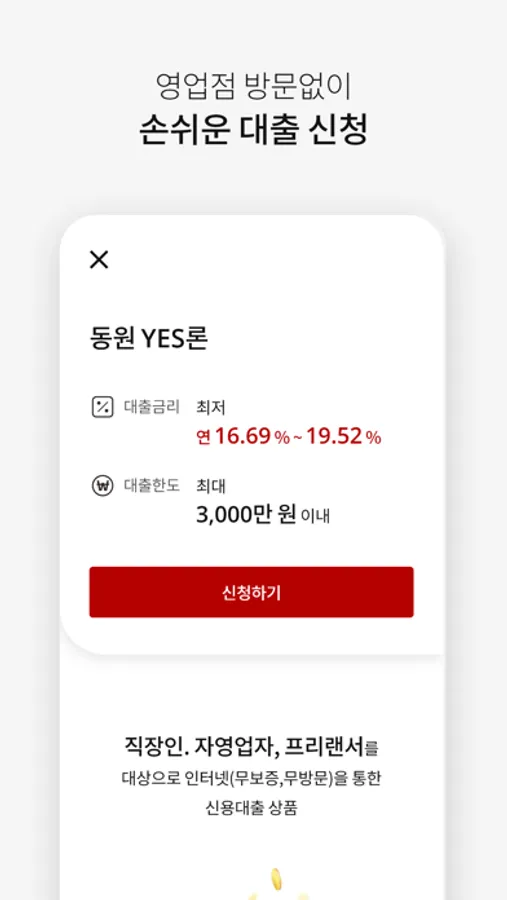 - 대출대상 : * 직장인, 사업자, 프리랜서