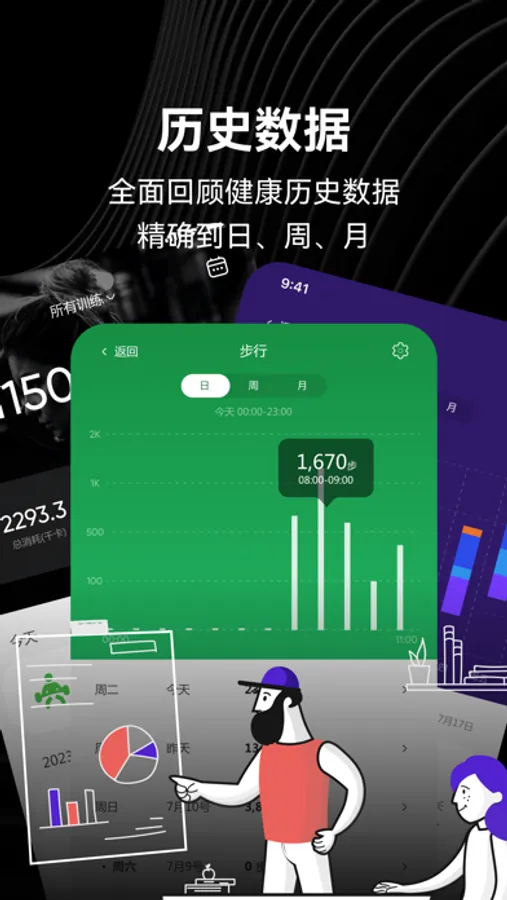 1、配合旗下智能穿戴设备,查看您在不同活动状态下的基本情况。