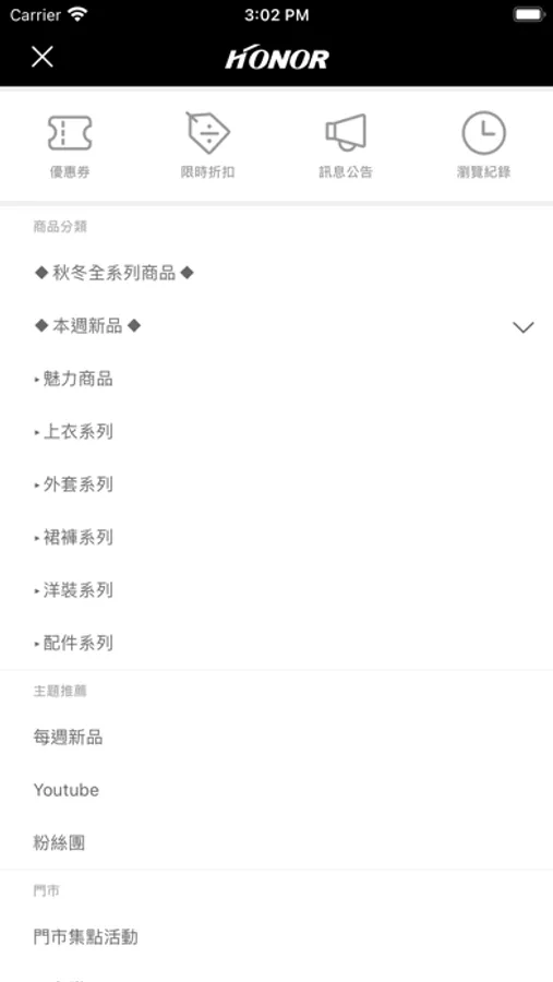 HONOR山形屋,超優惠的再現購物平台,提供女裝各種款式,每季超過300多種款式,包含上衣,外套,裙子,褲子,洋裝和配件