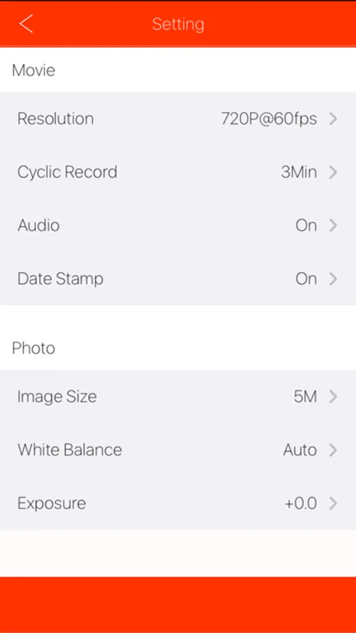 5. Set: set various parameters of the camera (WiF set recycling record sound switch ....), As well as time synchronization, and SD card formatting and other functions, view the camera's firmware version and APP version features.