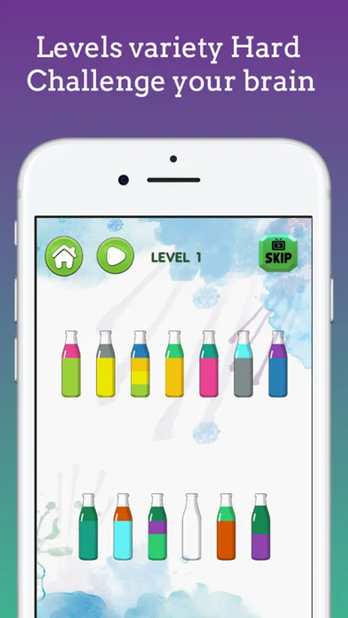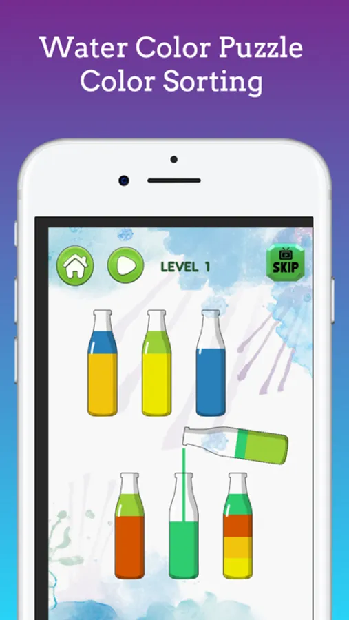 - Puzzle game: Use your brain with logic, imagination and creative to find out how sorting color water go to bottle with same color complete the missions.