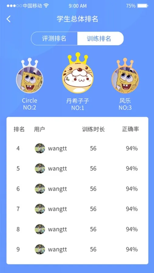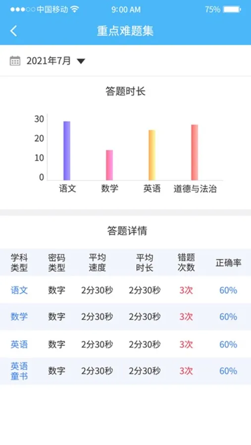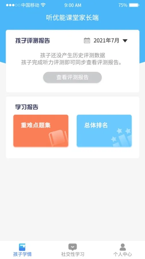 家长使用该APP可以查看学生的听力评测、听力训练情况。