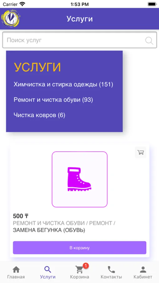Химчистка и стирка одежды. Ремонт и чистка обуви. Чистка ковров. Астана (Нур-Султан).