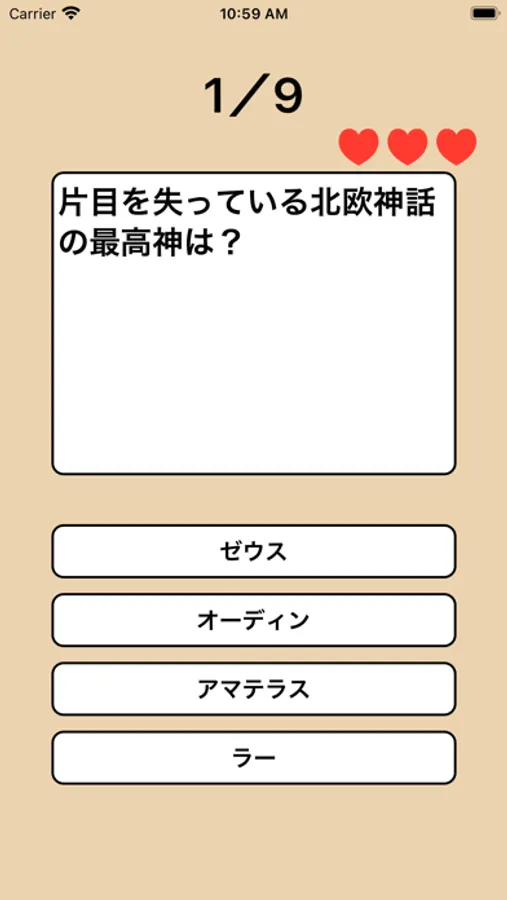 神話に登場する神様や出来事をQuizにしたアプリです。