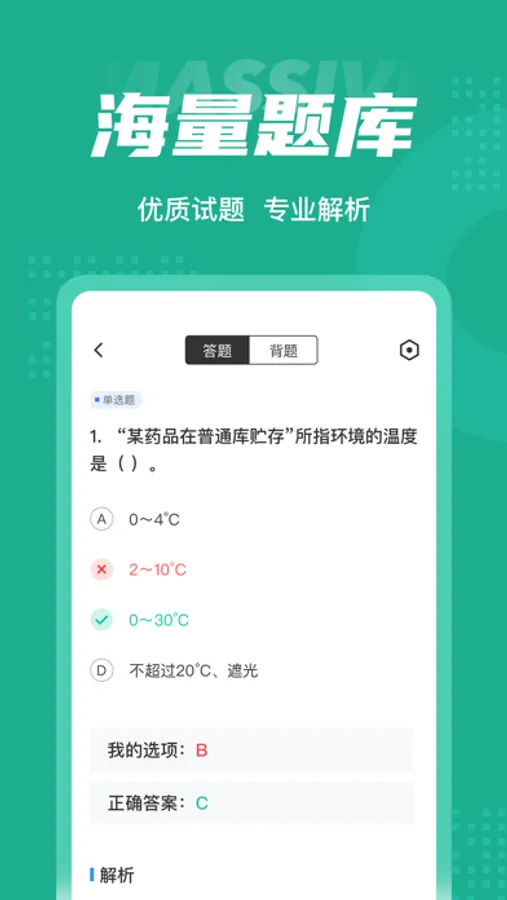 药学士题库内含考点练习,全国通用卷以及地区卷模拟练习,以及按照固定考试比重的随机式的抽题的真题考场,成绩单实时记录考试数据,一点一滴的反馈考生近期学习状态以及自我正确率的提升,大大的给予考生通过考试的信心。