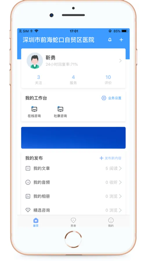 提供人性化的在线咨询、社康咨询等服务,体现了“以病人为中心”的服务理念,缓解“看病难”的现状。