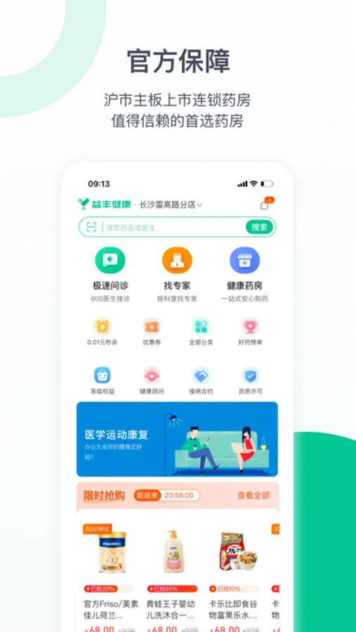 益丰健康是由益丰大药房及益丰互联网医院共同打造的线上线下问诊购药平台,通过自营药房及专业医师团队,为用户提供在线购药、用药咨询和寻医问诊服务。