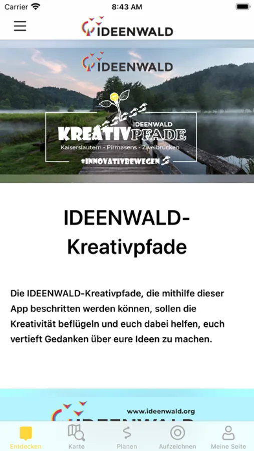 Lasst euch auf den IDEENWALD-Kreativpfaden inspirieren und lernt dabei die Region um den Pfälzerwald besser kennen. Die Pfade sind die perfekten Wegbereiter, um euch, losgelöst von eurer üblichen Arbeitsumgebung, auf eine Wanderung zu eurer eigenen Idee zu begeben. Dabei ist es egal, ob ihr gerade erst am Anfang eines Projektes steht, oder einen Gedanken, dem ihr schon lange nachgeht, weiterentwickeln wollt.