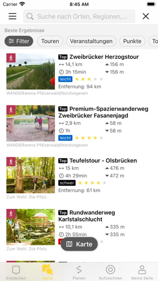 Wenn du eine Rad-, Wander- oder Laufstrecke aufzeichnest, kannst du dein Workout in Apple Health speichern. Daten aus HealthKit werden nicht für Marketing oder Werbezwecke genutzt.