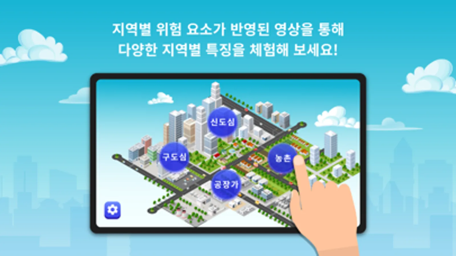 지역을 선택하고 경험하는 1인칭 등교 영상에서는 10~15개의 위험상황이 제공됩니다.