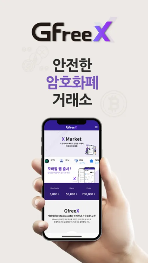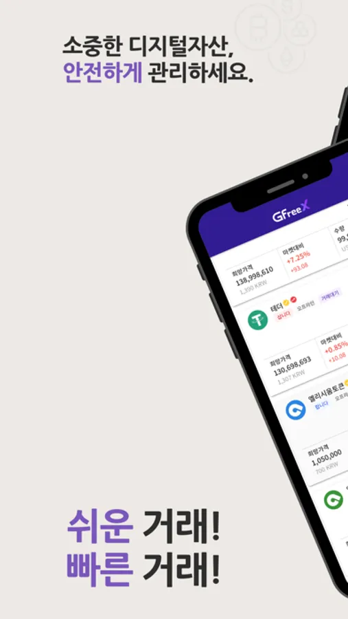 GfreeX 모바일 어플리케이션입니다. 쉬운 OTC 거래. 이제 손 안에서도 즐기세요.