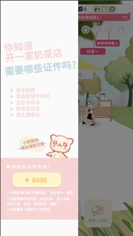 Step3:上架奶茶,就可以放置挂机赚钱啦!