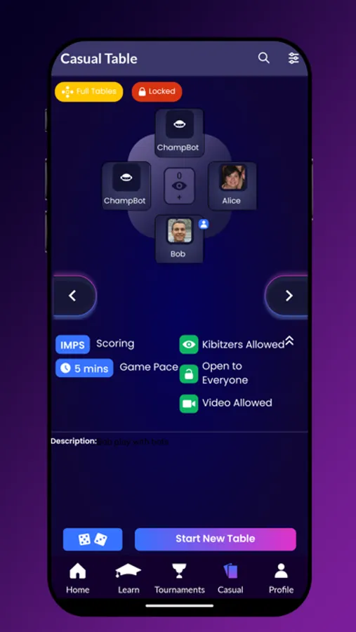 Whether you want to play with a partner or with a powerful bot, you can play bridge with players from all over the world. With our advanced video conferencing system, you'll feel as if you're sitting across the bridge table, together. Play face-to-face with new people 100% online, 24/7, for free.