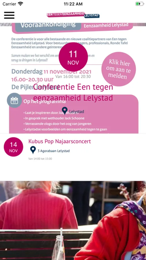 Zou je meer mensen willen ontmoeten of wil je mee doen aan activiteiten in Lelystad, gebruik dan onze app!