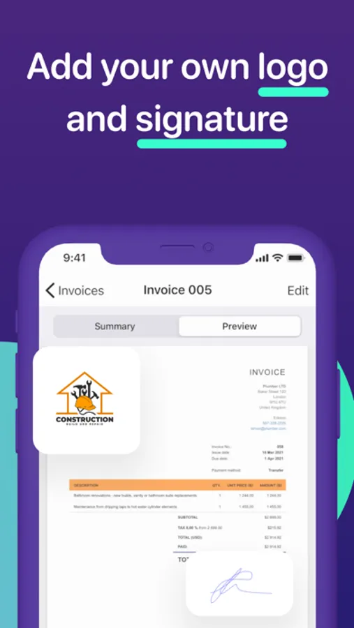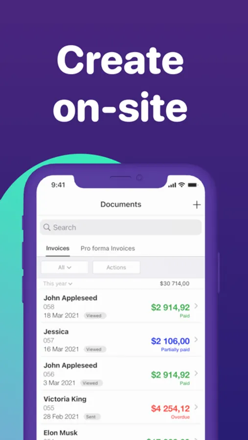 Create, send and share invoices to your customers directly from your phone. Send invoices on the go directly to your customer! It's extremely easy to use and saves a lot of time. Track the whole process on your phone and keep your finances and your company organized. It’s ideal for small business owners, contractors and freelancers who need a reliable mobile invoicing solution.