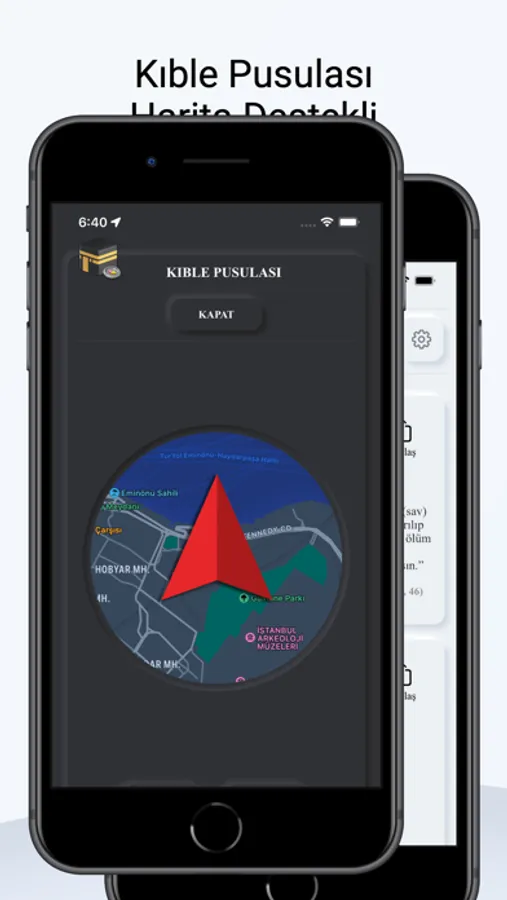 KIBLE PUSULASI ile kıble yönünü en doğru şekilde bulup, harita üzerinden konumunuzla birlikte görebileceksiniz. Ayrıca ana ekrana da kıble pusulasını pratik kullanım için yerleştirdik.