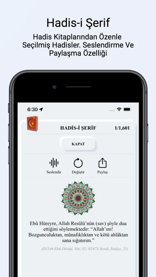 Günün Ayeti, Hadisi ve Cuma günlerine özel olarak gösterilen kartlar ile her gün yeni bir şeyler öğreneceksiniz.