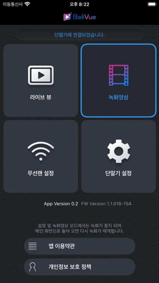 BeliVue 블랙박스의 무선랜 연결용 iOS 어플리케이션