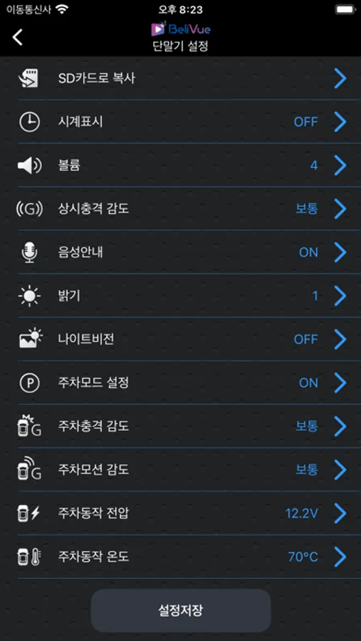 BeliVue 블랙박스의 무선랜 설정과 단말기 설정을 사용자가 변경 할 수 있습니다.