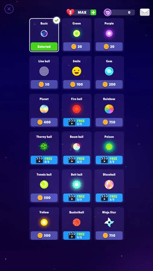 - Clear each stage by removing bricks on the board