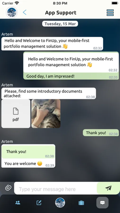 - Direct and live chat, through which you can ask questions about anything related to your bundle of portfolios, and get responses back in a secure and dedicated communication channel