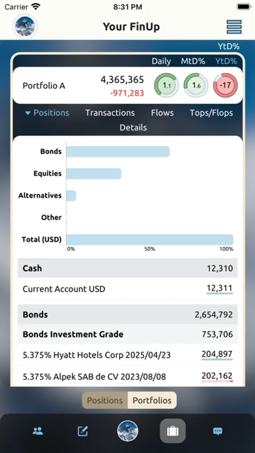 - Daily pricing and transaction tracking of simulated and real portfolios, you are connected in real-time and get timely updates on portfolios and the underlying strategies